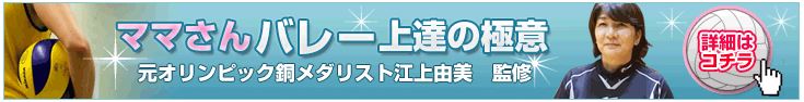 元オリンピック銅メダリスト江上由美監修のママさんバレー上達の極意(DVD)は、もっと上手くなりたい、チームを強くしたいけどどうしたりらいいのか分からないなど、9人制のバレーボールの基本技術はもちろん、コツや練習方法が分かり、初心者から中級者、指導者の方までの今の悩みを解消することが出来ます。
